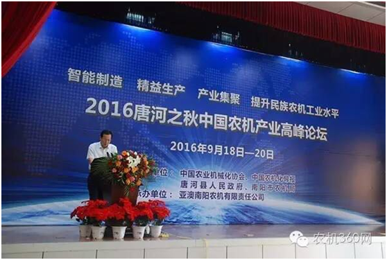 9月20日,由中國農(nóng)業(yè)機械化協(xié)會、《中國農(nóng)機化導(dǎo)報》、河南省唐河縣政府和南陽市農(nóng)機局共同主辦,亞澳南陽農(nóng)機有限責(zé)任公司承辦的2016唐河之秋中國農(nóng)機產(chǎn)業(yè)高峰論壇在河南省唐河縣舉行。全國各地農(nóng)機生產(chǎn)企業(yè)、當(dāng)?shù)亟?jīng)銷商以及媒體代表共200多人參加了此次論壇。