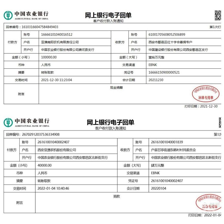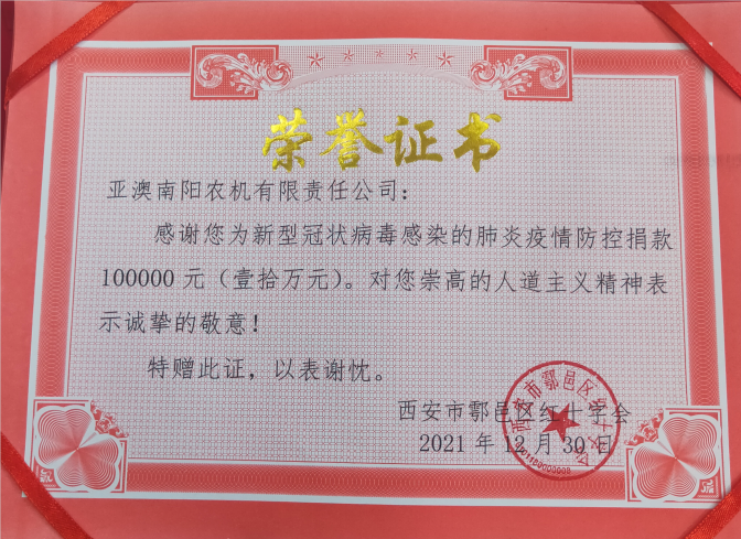十二月份,一場突如其來的疫情打亂了西安人平靜的生活,面對日趨嚴(yán)峻的疫情態(tài)勢,亞澳農(nóng)機(jī)作為一家有社會責(zé)任感的企業(yè)積極奉獻(xiàn)自己力量,亞澳農(nóng)機(jī)南陽公司為鄠邑區(qū)紅十字會捐款100000元,亞澳農(nóng)機(jī)總公司為鄠邑區(qū)甘亭街道東韓村捐款40000元,亞澳農(nóng)機(jī)與社會各界人士并肩作戰(zhàn),為疫情防控工作貢獻(xiàn)自己的一份薄力。