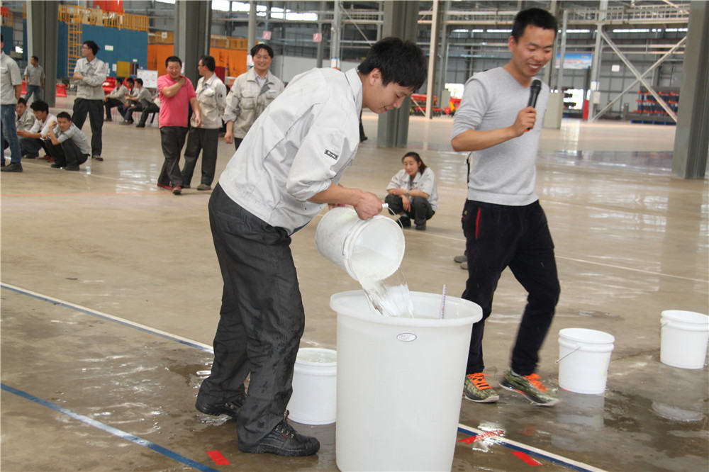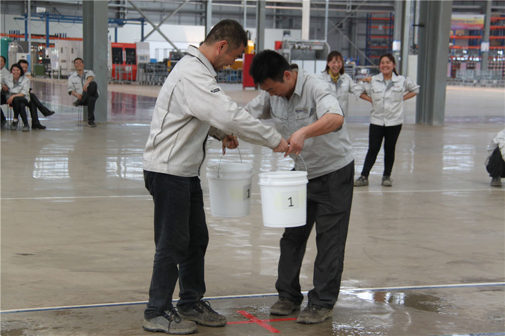 下午13:30在運(yùn)動場出現(xiàn)了擺放有序的水桶,這是我們的第二項活動:精益運(yùn)輸大接力,取水點的距離分別大于等于10米,每個桶分別裝滿10L水,每組隊員是五個人,要在120秒內(nèi)完成大桶水量的收集,超過120秒的隊員淘汰出局,在規(guī)定的時間內(nèi),水量收集多者獲勝,抽簽決定出場順序,這項活動是讓員工明白精益化生產(chǎn)體系的精髓所在之處;減少過程浪費,實現(xiàn)低成本的快速交付,滿足客戶的同時,做到細(xì)節(jié)控制,提升產(chǎn)品使用價值,提升公司盈利空間。比賽開始了只見隊員雙手提起20L的水往下一站的隊友那里送,中間會有灑水會很累,但是每個人都為了自己隊伍的榮譽(yù)拼盡全力向終點奔去,旁邊的隊友為他們加油、吶喊,最終自焊獲得第一名。