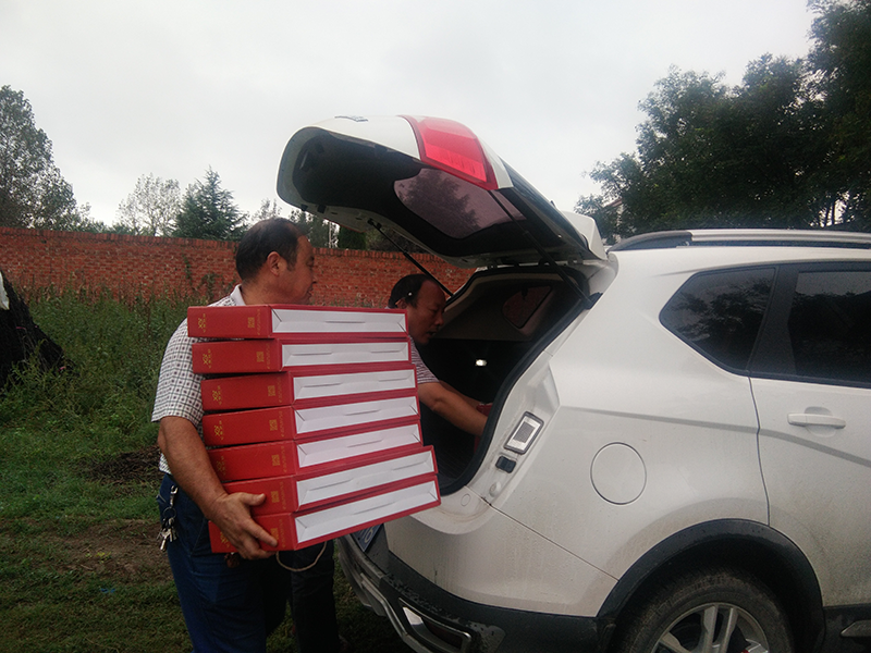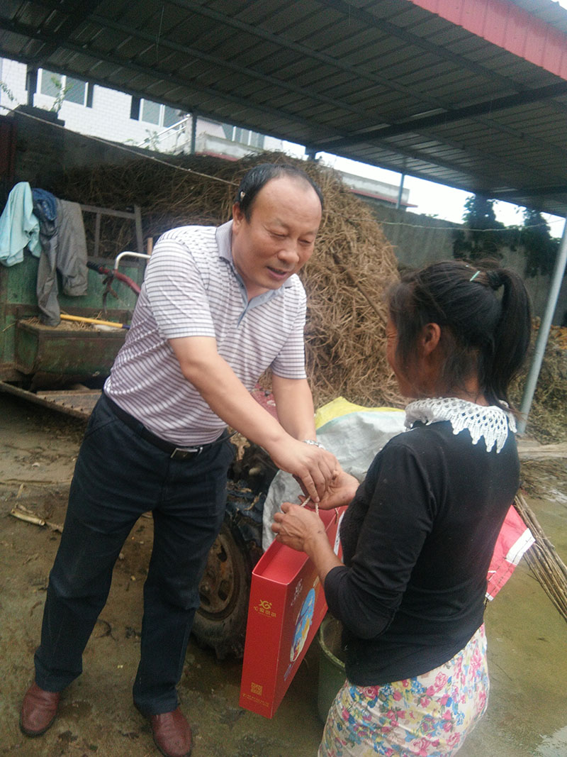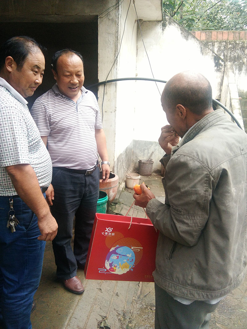 淫雨霏霏,在國慶、中秋雙節(jié)來臨之前,2017年9月25日下午,亞澳南陽農(nóng)機有限公司總經(jīng)理助理郭靖懷著滿滿的熱情與關懷,帶著月餅禮盒,再次來到大河屯鎮(zhèn)申沖村開展扶貧慰問工作。
