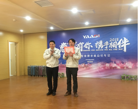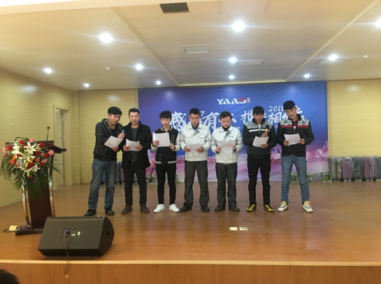 年會初始,總經(jīng)理史炳哲致新年賀詞,并做了2017年年度總結(jié),宣讀了2018年度規(guī)劃。對亞澳全體員工在過去一年中做出的努力和奉獻給予了充分的肯定和贊揚。接著由生產(chǎn)主管王紅衛(wèi)和質(zhì)檢作業(yè)長朱謹超分別為我們作了2017年工作總結(jié)及涂裝質(zhì)量問題分析。最后由總經(jīng)辦郭靖特助宣讀了2017年度表彰決定,對優(yōu)秀員工,優(yōu)秀班組、市場開發(fā)先鋒、項目申報、新產(chǎn)品開發(fā)等五個獎項,共15人進行了表彰。