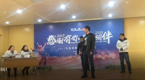 接著使人捧腹大笑的話劇表演《羅密歐與朱麗葉》、優(yōu)美激昂的詩朗誦《十年獨白》、別具一格的《三句半》、令人陶醉的深情歌唱《男人花》、貼近現(xiàn)實生活又精彩的小品《應聘》一一登上了舞臺。中間穿插的小游戲更是把年會推上了高潮。